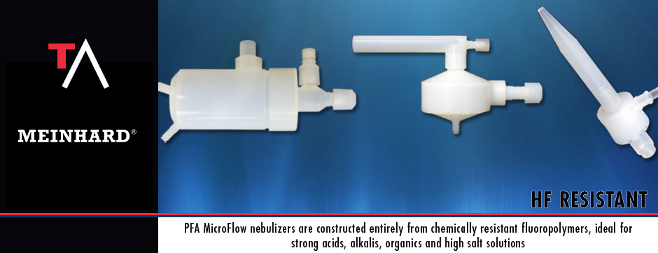 From applications that require high sensitivity to the fastest throughput, MEINHARD can supply products for all ICP and ICPMS needs. MEINHARD sample introduction accessories are used in every application and industry: environmental, clinical, food and water, geochemical, semiconductor fabrication, and many more. Bring our expanded line of products into your lab today to experience a greater level of support, quality, and availability!