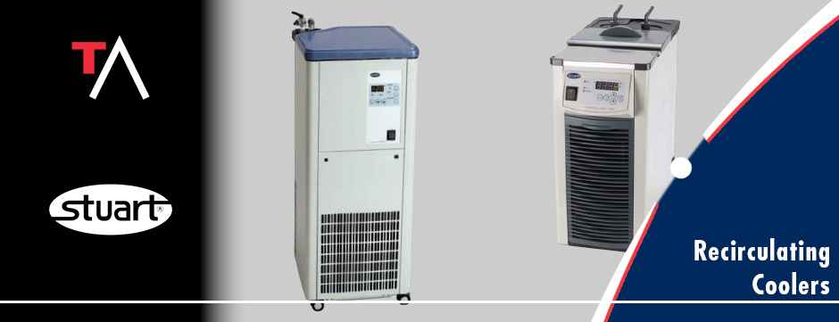 The two recirculating coolers offered by Stuart® can be used with water to provide a more environmental solution to cooling, if used with a lower temperature cooling medium such as ethylene glycol they can also be used to offer more powerful sub ambient cooling.