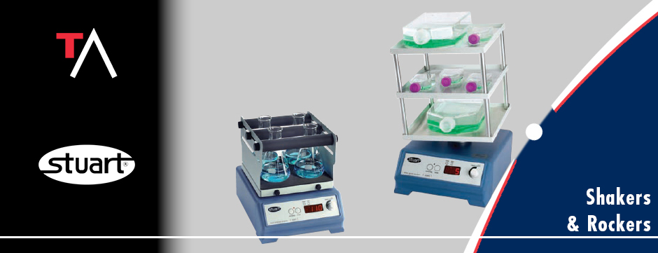 Stuart® offers a comprehensive range of shakers and rockers, units are available with four actions, orbital, linear, 3D gyratory and see-saw. Almost all actions are also available in personal sized units or larger laboratory scale models.